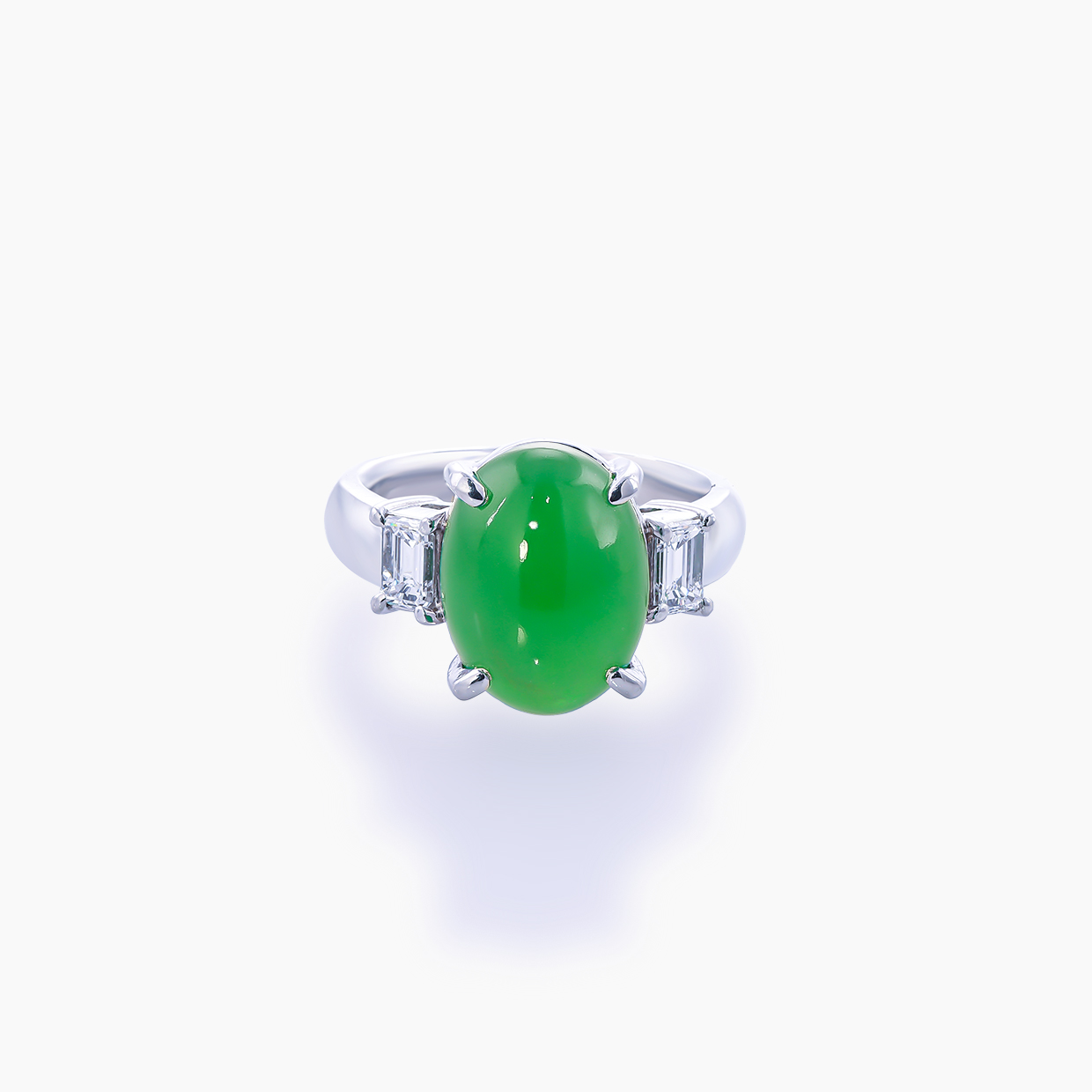<p class="kayoko-item-section1-story" style="--tw-border-spacing-x: 0; --tw-border-spacing-y: 0; --tw-translate-x: 0; --tw-translate-y: 0; --tw-rotate: 0; --tw-skew-x: 0; --tw-skew-y: 0; --tw-scale-x: 1; --tw-scale-y: 1; --tw-scroll-snap-strictness: proximity; --tw-ring-offset-width: 0px; --tw-ring-offset-color: #fff; --tw-ring-color: rgb(59 130 246 / .5); --tw-ring-offset-shadow: 0 0 #0000; --tw-ring-shadow: 0 0 #0000; --tw-shadow: 0 0 #0000; --tw-shadow-colored: 0 0 #0000; border: 0px; font-family: 'Hiragino Mincho ProN', 'ヒラギノ明朝 Pro W3', 'Hiragino Kaku Gothic Pro', 'ヒラギノ角ゴ Pro W3', 'Hiragino Kaku Gothic Pro', 'ヒラギノ角ゴ Pro W3', メイリオ, Meiryo, 'MS PGothic', 'MS Pゴシック', 'sans-serif'; margin: 0px 0px 24px; outline: 0px; padding: 0px; vertical-align: baseline; line-height: 2; color: #808080;">今や非常に貴重な7.23ctの圧倒的な存在感を放つ上質な翡翠(ジェダイト)です。透明感のある鮮やかで瑞々しく、トロリとした艶のあるグリーンは、吸い込まれるような美しい色合いで、見る者を魅了します。この翡翠の魅力を最大限に引き出すのが、熟練の職人技が光るバランスの良いカボションカット。丸みを帯びたドーム型の表面は光を優しく取り込み、翡翠特有のトロリとした艶やかな質感を際立たせます。また、内包物やキズが非常に少なく、高品質の宝石であることを物語っています。翡翠の神秘的な輝きを一層引き立てるために、脇石はシンプルに透明感あふれるテーパーカットのダイヤモンドをあしらいました。プラチナの洗練された輝きで、翡翠のグリーンがより際立ち、エレガントで上品な印象を与えます。翡翠は日本の国石としても知られ、古来より「不老長寿」や「魔除け」のお守りとして大切にされてきました。このリングは、その神秘的な美しさを身につける喜びに加え、幸福を呼ぶお守りとしても末永くご愛用いただける逸品です。</p>
