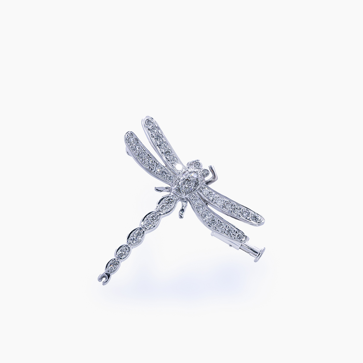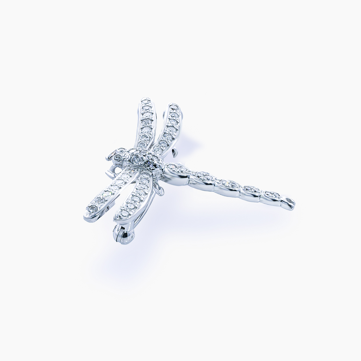 後戻りが出来ないトンボは前にだけ進むことから縁起の良いアイテムとして人気です。トンボの中で最も大きいオニヤンマをデザインしたブローチは夏色ジャケットにピッタリ。装着するだけで子供の頃、夏休みに虫かごと網を持って空高く飛んでいるオニヤンマを追いかけていた記憶が蘇ります。