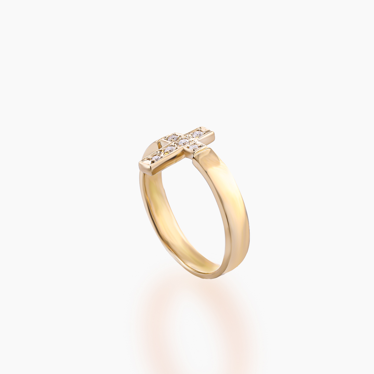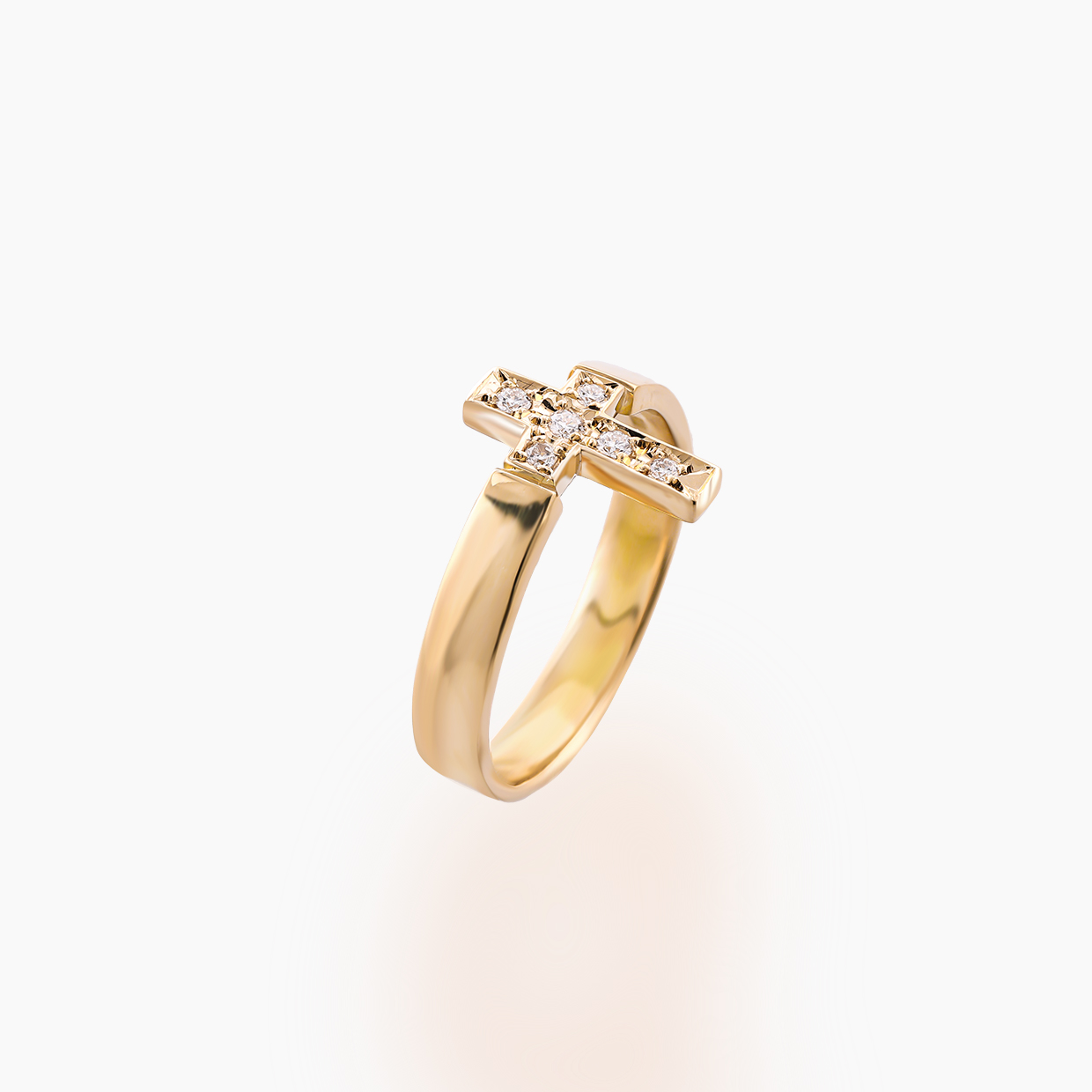 K18手作りのクロスリングです。クロスの縦のラインが指に沿うようにフィットして、手作りならではの温かみを感じさせます。リング巾は3.6mm、太すぎず細すぎずお着けになりやすい巾です。十字は古くから「守護」の象徴として親しまれてきたモチーフです。身に着ける人の内面の強さや信じる人への静かな祈りをそっと表現してくれることでしょう。