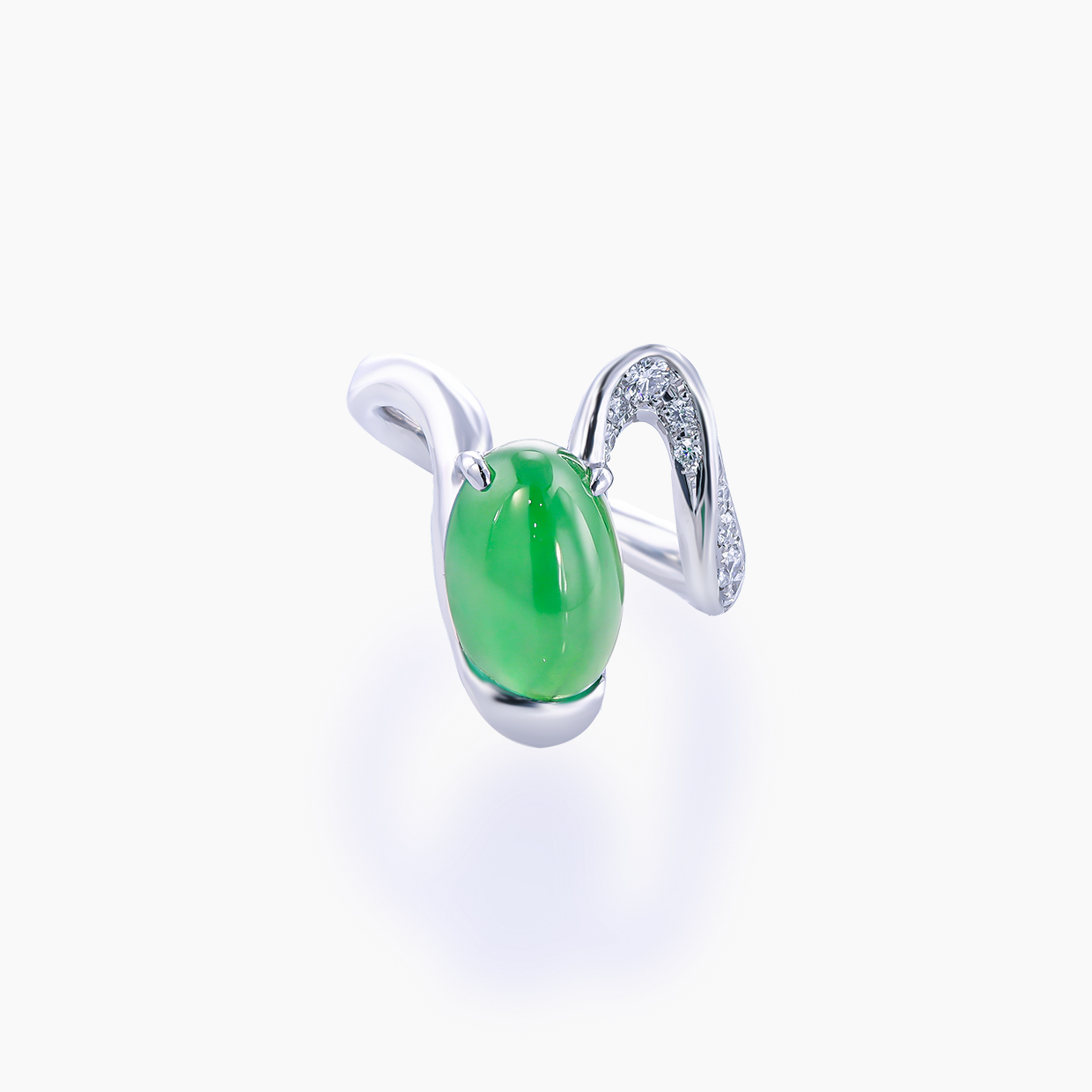<p class="kayoko-item-section1-story" style="--tw-border-spacing-x: 0; --tw-border-spacing-y: 0; --tw-translate-x: 0; --tw-translate-y: 0; --tw-rotate: 0; --tw-skew-x: 0; --tw-skew-y: 0; --tw-scale-x: 1; --tw-scale-y: 1; --tw-scroll-snap-strictness: proximity; --tw-ring-offset-width: 0px; --tw-ring-offset-color: #fff; --tw-ring-color: rgb(59 130 246 / .5); --tw-ring-offset-shadow: 0 0 #0000; --tw-ring-shadow: 0 0 #0000; --tw-shadow: 0 0 #0000; --tw-shadow-colored: 0 0 #0000; border: 0px; font-family: 'Hiragino Mincho ProN', 'ヒラギノ明朝 Pro W3', 'Hiragino Kaku Gothic Pro', 'ヒラギノ角ゴ Pro W3', 'Hiragino Kaku Gothic Pro', 'ヒラギノ角ゴ Pro W3', メイリオ, Meiryo, 'MS PGothic', 'MS Pゴシック', 'sans-serif'; margin: 0px 0px 24px; outline: 0px; padding: 0px; vertical-align: baseline; line-height: 2; color: #808080;">今や非常に貴重な7.23ctの圧倒的な存在感を放つ上質な翡翠(ジェダイト)です。透明感のある鮮やかで瑞々しく、トロリとした艶のあるグリーンは、吸い込まれるような美しい色合いで、見る者を魅了します。この翡翠の魅力を最大限に引き出すのが、熟練の職人技が光るバランスの良いカボションカット。丸みを帯びたドーム型の表面は光を優しく取り込み、翡翠特有のトロリとした艶やかな質感を際立たせます。また、内包物やキズが非常に少なく、高品質の宝石であることを物語っています。翡翠の神秘的な輝きを一層引き立てるために、脇石はシンプルに透明感あふれるテーパーカットのダイヤモンドをあしらいました。プラチナの洗練された輝きで、翡翠のグリーンがより際立ち、エレガントで上品な印象を与えます。翡翠は日本の国石としても知られ、古来より「不老長寿」や「魔除け」のお守りとして大切にされてきました。このリングは、その神秘的な美しさを身につける喜びに加え、幸福を呼ぶお守りとしても末永くご愛用いただける逸品です。</p>